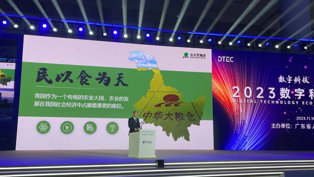 11月10日,“2023数字科技生态大会”在广州开幕。北大荒集团受邀参加大会,北大荒农垦集团党委副书记、副董事长、总经理杨宝龙出席并作主旨发言。