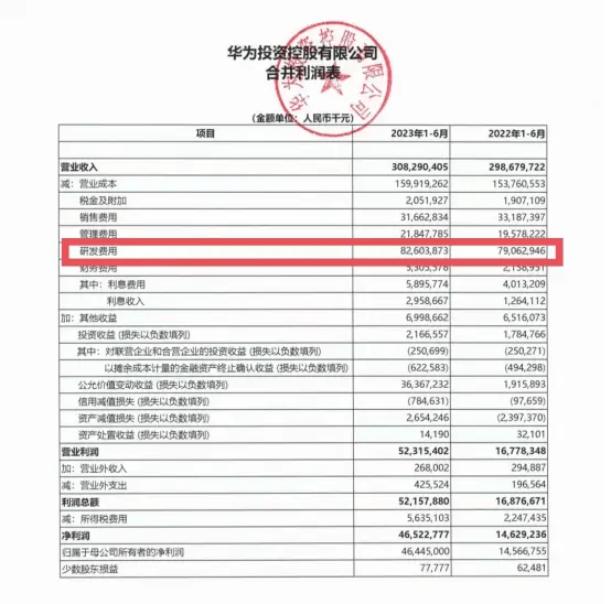 8月30日,华为在上清所官网披露2023年半年报。上半年,华为研发费用为826.04亿元,同比增加35.41亿元,上年同期为790.63亿元。