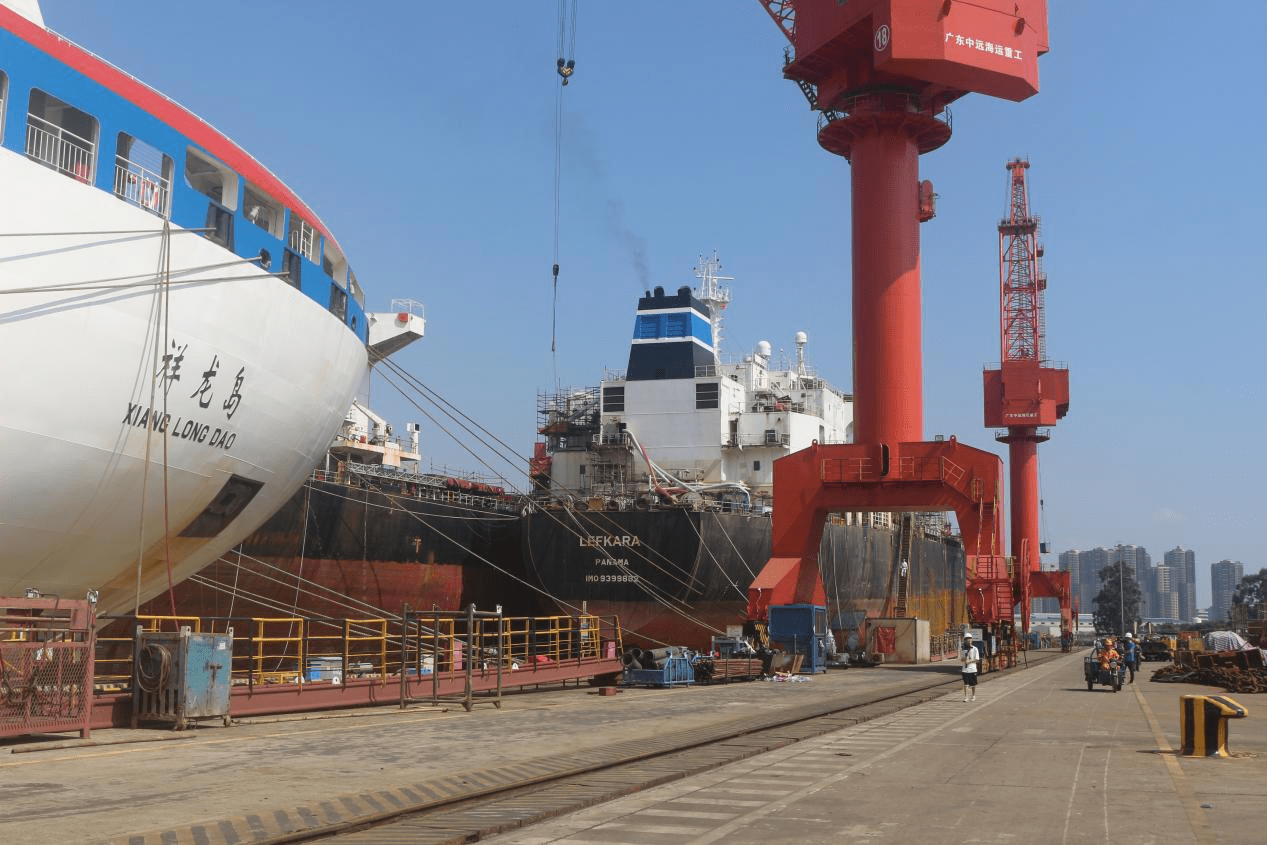 在东莞麻涌镇的狮子洋畔,一艘艘邮轮、成品游轮停靠在码头的泊位内。大型起重、运输设备隆隆作响,广东中远海运重工工作人员正在对两艘船舶进行特种涂装、机电工程等综合修理与维护工作。该公司副总经理敖武平介绍,公司主营海洋工程装备建造、修理改装以及配套服务,其中船舶维修改装业务营收占公司总营收的70%左右,每年修理约300艘船舶,修船收入近五年已累计增长77.52%。