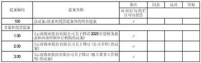 注:1、如欲对议案投同意票,请在“同意”栏内相应地方填上“√”;如欲对议案投反对票,请在“反对”栏内相应地方填上“√”;如欲对议案投弃权票,请在“弃权”栏内相应地方填上“√”;三者只能任选其一。