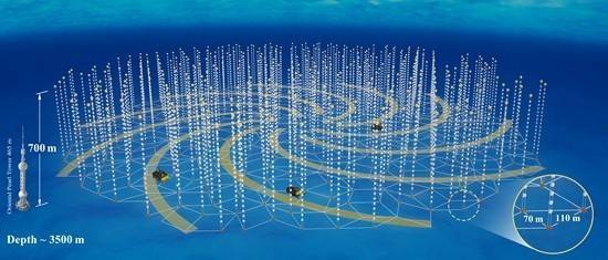 这篇论文揭示了中微子望远镜“海铃计划”的建设蓝图。这台望远镜预选台址位于南海北部的一个深约3.5公里的深海平原,海床平整,海底数百米高度范围内流速平缓。深海海水测量的放射性与普通海水的公开数据一致。中微子望远镜利用整个地球作为屏蔽体,接收从地球对面穿透而来的中微子。