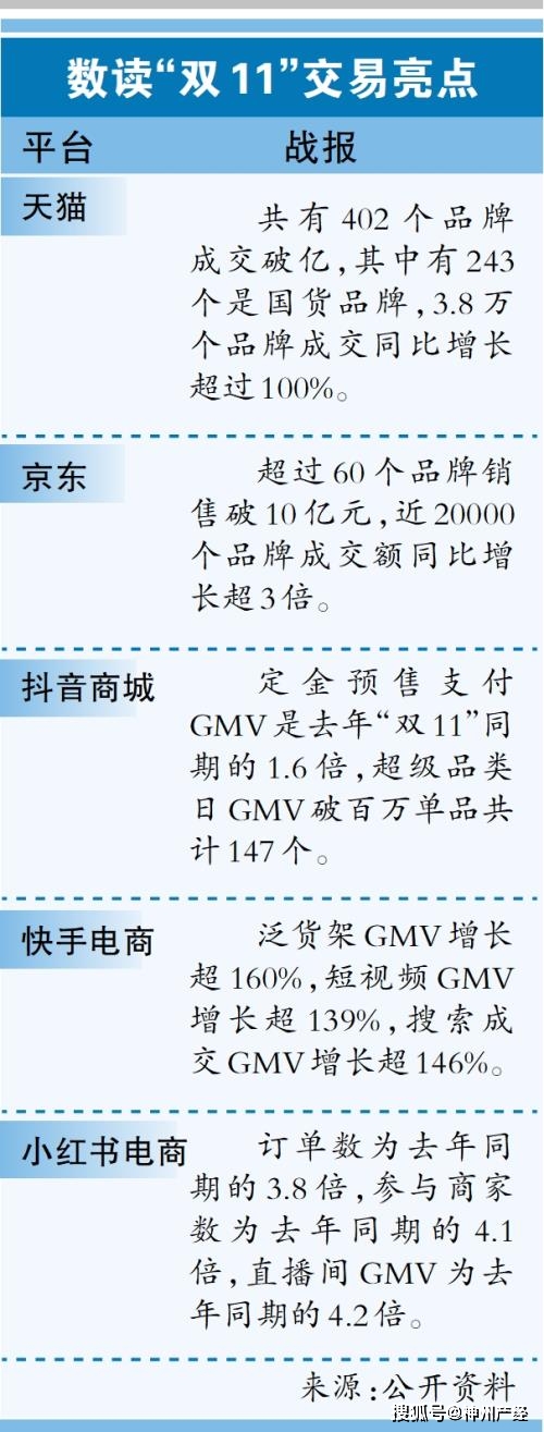 淘天数据显示,今年天猫“双11”用户规模和商家规模显著增长,其中全周期累计访问用户数超8亿,达到历史峰值。截至11月11日零点,共有402个品牌成交破亿,3.8万个品牌成交同比增长超过100%。“官方立减”商品订单量超2.1亿,“天天低价”商品订单量近9000万。京东方面则称,截至11月11日23:59,成交额、订单量、用户数齐创新高,“9块9包邮”“京东百亿补贴”“京东秒杀”成为“增量场”,累计超过60个品牌销售破10亿元,近20000个品牌成交额同比增长超3倍,新商家成交单量环比增长超5倍。
