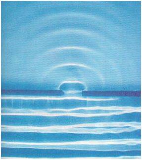 什么是干涉?两列波相互相遇的时候,会发生振动的叠加。如果两列波的波峰和波峰在某处相遇,这里就会出现大峰,振动加强;如果一列波的波峰和另一列波的波谷相遇了,峰谷相互抵消,振动就减弱了。有的地方振动加强,有的地方振动减弱,这就是干涉,比如下面就是水波的干涉图样。
