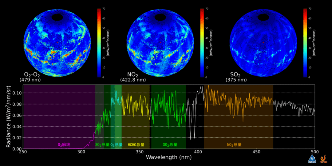 新研制的紫外高光谱臭氧临边探测仪的首图,清晰呈现其对地面上空平流层大气成分信息的分层探测能力,通过与紫外高光谱臭氧天底探测仪协同观测,可增强对全球臭氧、二氧化氮、二氧化硫等痕量气体总量与垂直分布的监测。