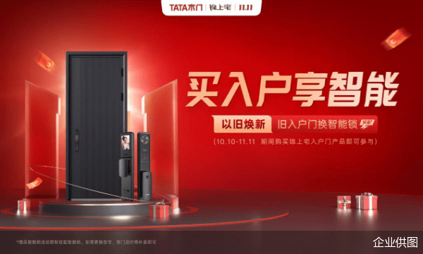 今年,TATA木门在天猫平台推出8大优惠政策:包括0元入会,扫码领100元无门槛优惠券;新房省心装,158/㎡装满家;8800灵动套餐门墙柜组合随心配;以旧焕新——一扇旧室内门可换5m踢脚线;买入户享智能——旧入户门换智能锁;窗品首平半价;爆品清单——超多爆款产品低至1299元;拍单立减——抖音专享拍单立减订单金额约4%。