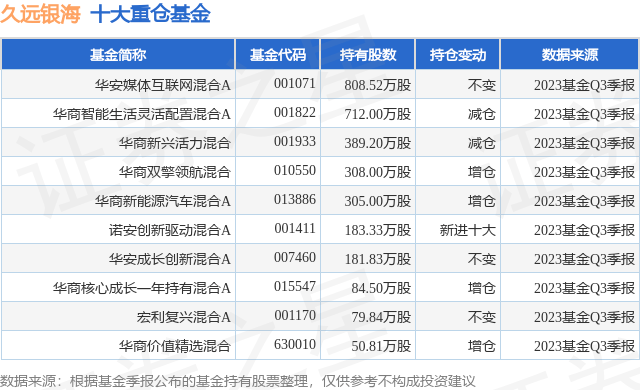重仓久远银海的前十大公募基金请见下表: