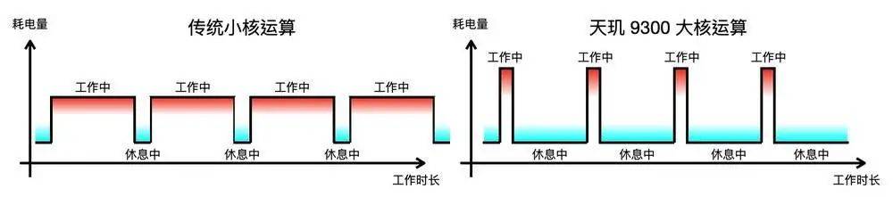 对比以往,“小核”所代表的小车,由于在技术不及“大核”先进;它在拉货时往往是空车拉货、运到目的地后再空车回家,白白把汽油浪费在空载的路上。但大核有着“乱序执行”等更灵活、更先进的“货运”调度设计,要不就是一程车就完成任务,然后回家休息;要不就是来回都会带点私货,把每一口汽油都用在运货上,拉货变得更有效率,货车就更更快回家休息。