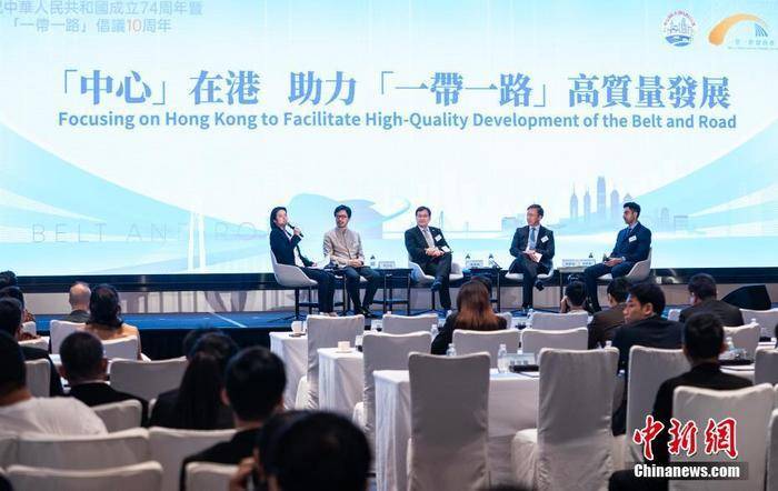 11月13日,第二届“一带一路”青年发展高峰论坛在香港举行,论坛由外交部驻香港特派员公署和香港“一带一路”总商会主办,本届的主题为“由香港出发,联通世界”。图为题为“‘中心’在港 助力‘一带一路’高质量发展”的分论坛讨论。中新社记者 侯宇 摄