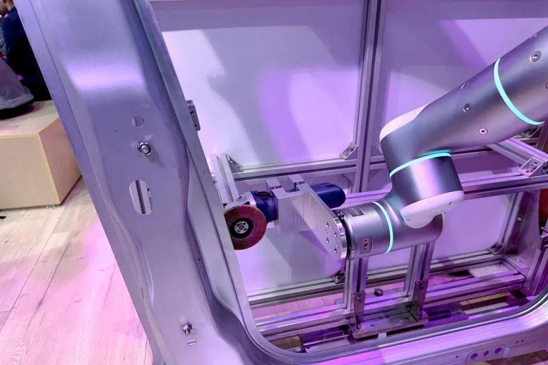 本次进博会上,非夕科技展出了车门洞焊渣打磨,是柔性打磨抛光解决方案的具体应用之一。非夕打磨方案由高负载自适应机器人 Rizon 10 加装普通电动打磨工具组成,无需外部力控工具或浮动磨头,即可凭借机器人的高响应底层力控技术实现复杂曲面的自适应贴合,弥补轨迹或工件精度误差,保证打磨质量。基于打磨工艺封装的元操作 Primitive,降低使用门槛,仅需简单的拖拽示教和图形化编程即可实现方案的快速部署。