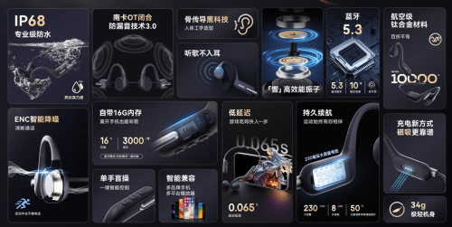 此外,自创立以来,NANK南卡还拥有千余项专利技术产权,其中,影响力度大的,还要属NANK南卡自研的“第三代響科技”,可以说第三代響科技是骨传导声学科技的一次彻底的突破革新,也代表骨传导行业内的高技术水准,在原第二代響科技基础上,通过更精细的结构堆叠和音场再现度的提高,将震子振动效率提高至60%以上,从而将音质全频段提升至80%以上,为用户提供更为清晰、精确的音乐享受。此外,更是引入更多高级声学工程师和Binaural Audio Rendering算法,将音场再现度提升至90%以上,可带来细腻、沉浸式的听觉体验。