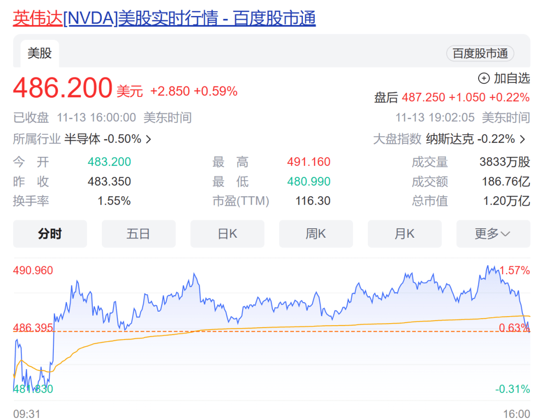当地时间11月13日,美股三大股指涨跌不一。截至收盘,道指涨0.16%,标普500指数跌0.08%,纳指跌0.22%。
