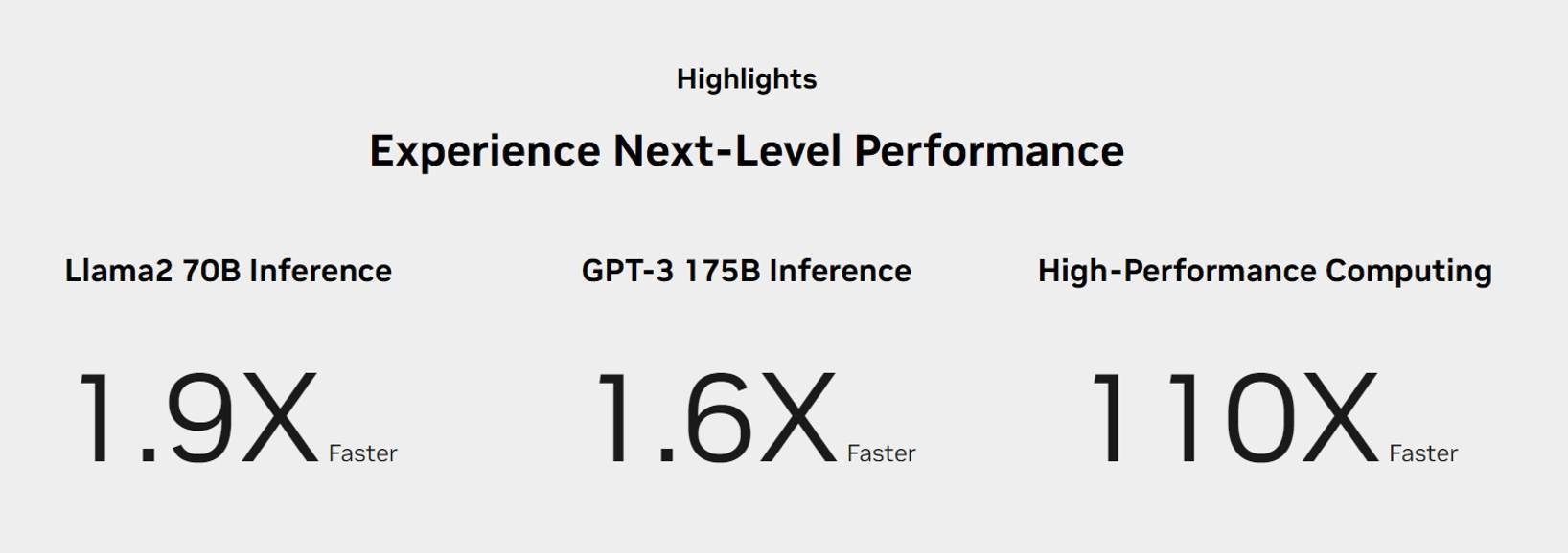 H200产品性能对比,来自官网