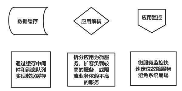 2. 第二,做多级的缓存,通过Redis和消息队列,我们实现数据库与服务之间、应用与应用之间的数据缓存。同时消息队列也可以有效的实现应用之间的解耦,单个应用的故障弱化,避免拉垮整个业务环境。