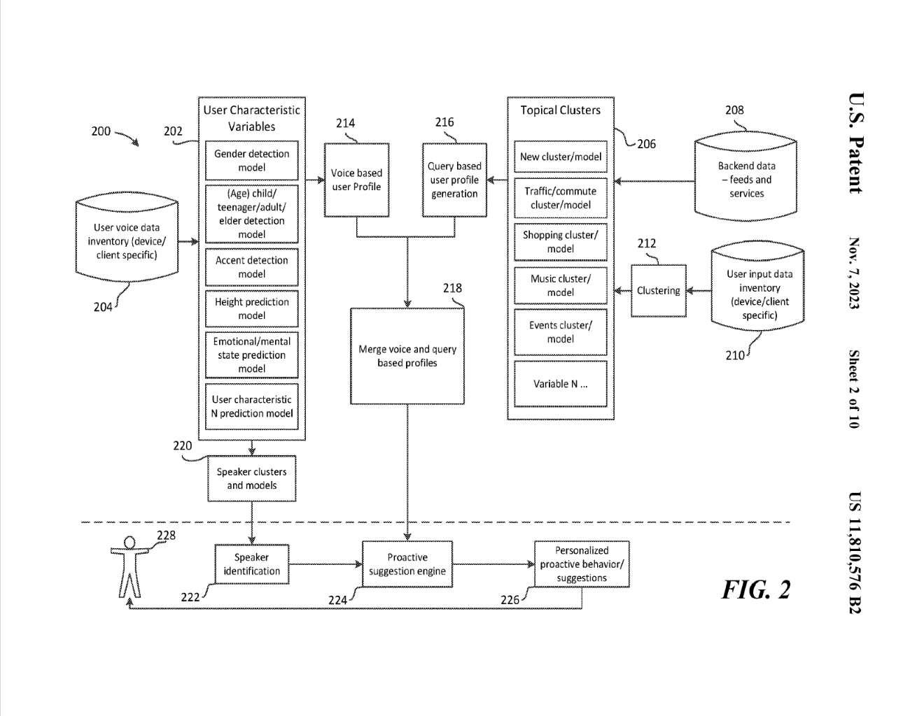 该专利概述的 AI 技术和提供标准化交互的传统 AI 模型不同,可以基于声音等多模态数据,结合每位用户的特征来创建对应的账号文件,可以更加个性化地响应和反馈用户需求。