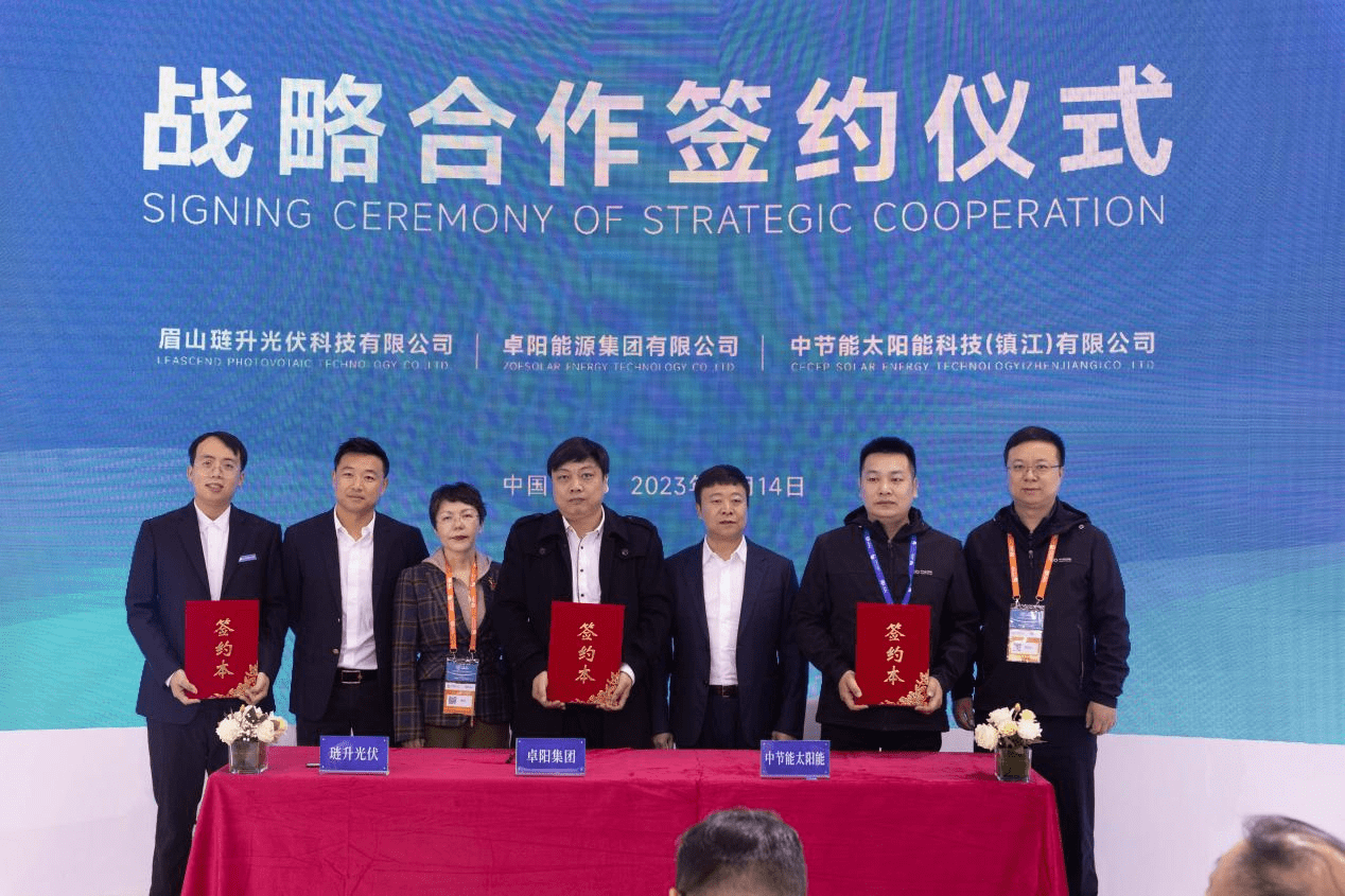 琏升光伏在展会现场首先与通威股份、卓阳能源签署了三方合作协议。通威股份是世界500强,全球光伏巨头;卓阳能源是致力于能源结构转型的全球化企业。琏升光伏携手通威、卓阳,势必为行业发展带来更多期待。随后,与中节能太阳能、卓阳能源签署三方合作协议,旨在打通光伏产业链,实现合作共赢,推动行业升级。中节能太阳能作为国内太阳能发电为主业的上市公司,对琏升光伏的第三代高效异质结电池给予了充分认可,此次签约电池片采购协议将进一步提升琏升光伏产品的市场占有量和认知度。卓阳能源则致力于为全球客户提供领先的绿色能源整体解决方案,此次签约采购中节能组件,将加强上下游产业链合作,推动琏升光伏异质结电池产品的市场应用和产业发展。