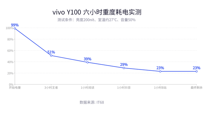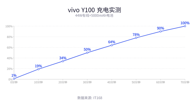 vivo Y100搭载了5000mAh超大电池,配备44W闪充,30分钟可充至50% ,70分钟充满。 此外这块电池的寿命也不用担心,在1600次完整充放电循环后,电池容量仍可≥80%。如果按一天一充计算,用户可以安心畅玩4年之久。