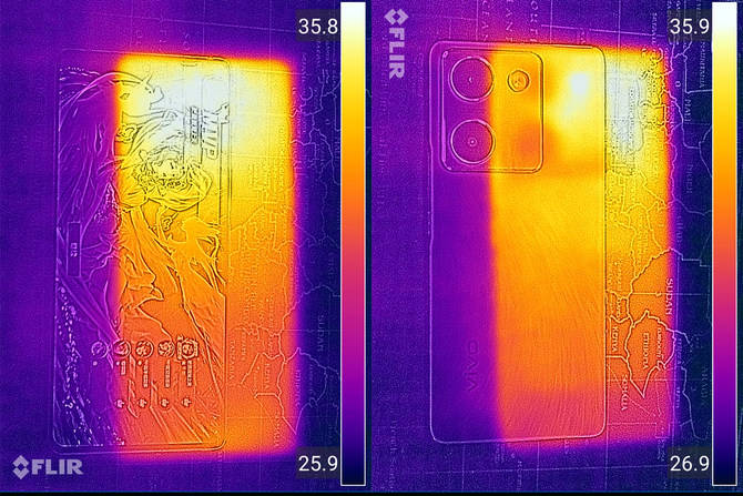 在长时间的游戏过程中,游戏内的画面也表现得非常流畅,游戏期间vivo Y100机身最 高温度约35.9℃,对手掌非常友好。