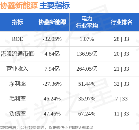 协鑫新能源港股市值4.84亿港元,在电力行业中排名第20。主要指标见下表:
