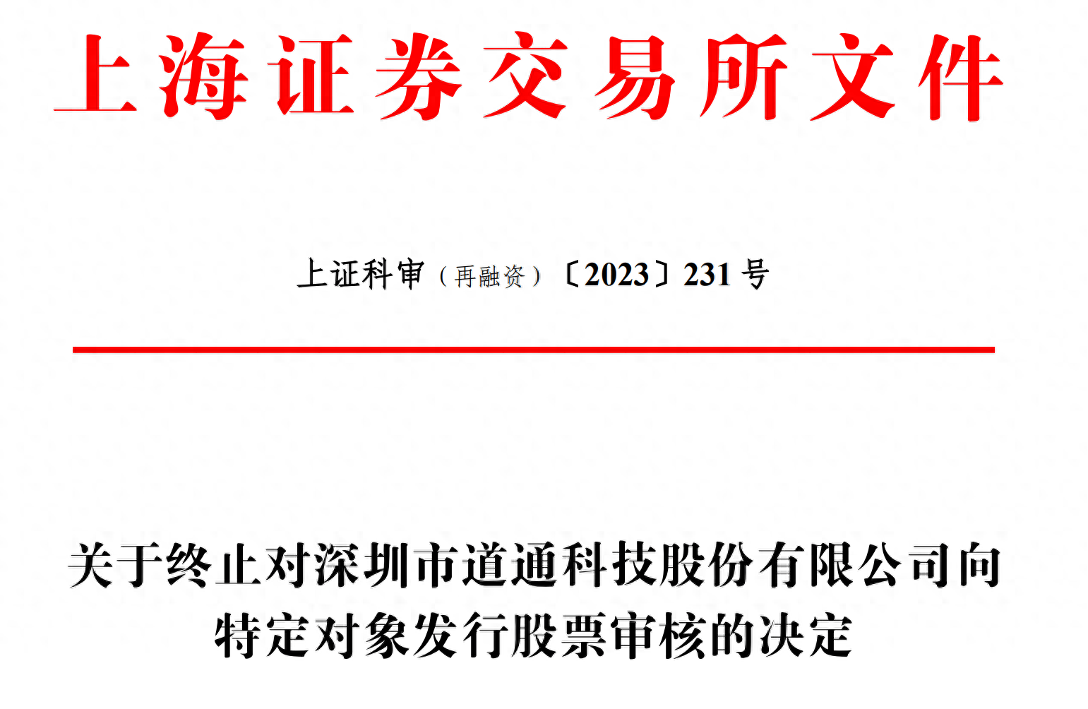 乐居财经 邓如菲 11月14日,据上交所文件,上交所决定终止对深圳市道通科技股份有限公司(以下简称“道通科技”)向特定对象发行股票的审核。