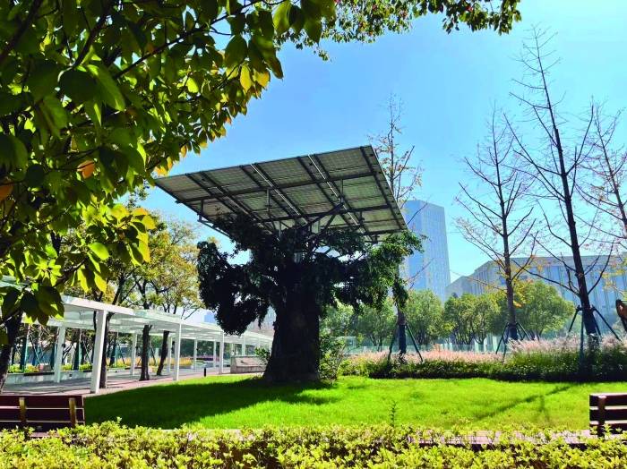 在新能源蓬勃发展的背景下,人们对这棵“光伏树”又有了新的设想:“未来是否可以变身为新能源汽车的充电桩,不管是现在的普通充电桩,还是将来的超充快充,都能有机地结合在一起。”