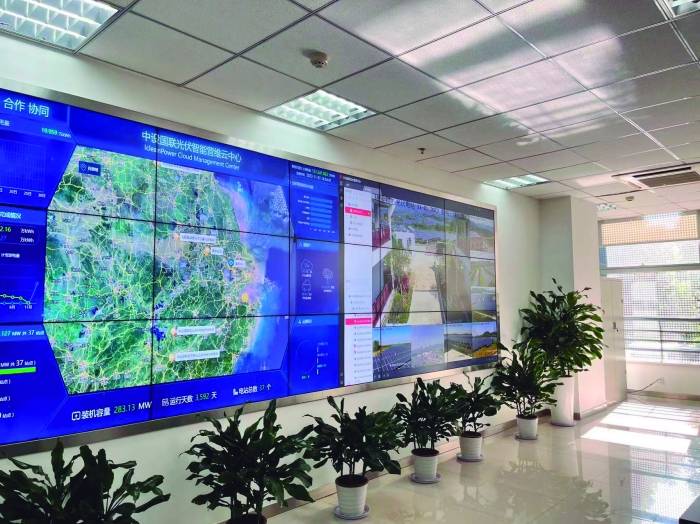 在数字化的大屏幕前,刘征向记者展示了瑞金红心光伏电站的实时监控视频及运行情况。截至目前,该电站已累计发电1.87亿千瓦时。据了解,该电站是公司“走出去”战略的帮扶项目之一,与当地国资瑞金城投合资设立,目前项目已经覆盖1200户家庭。