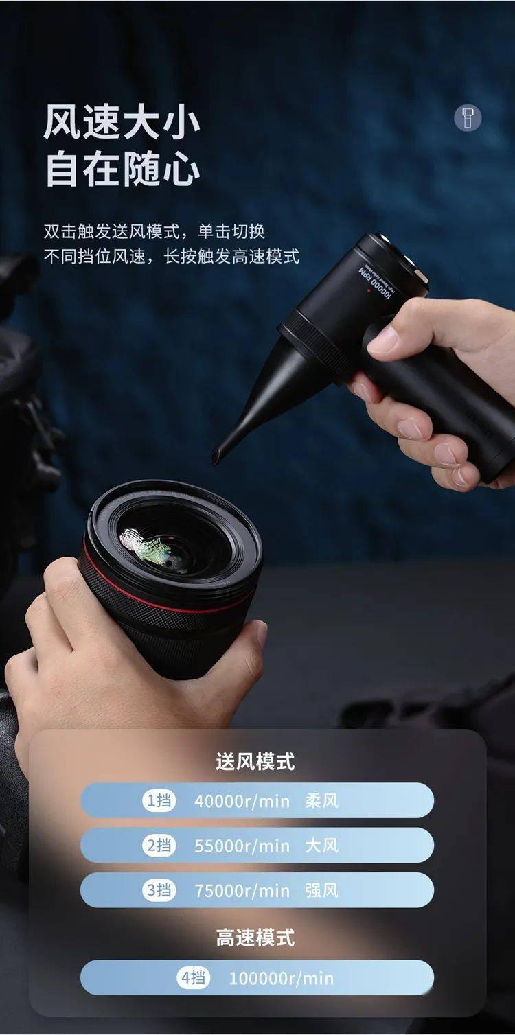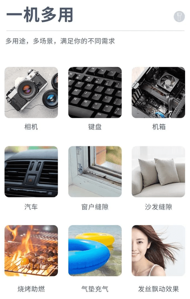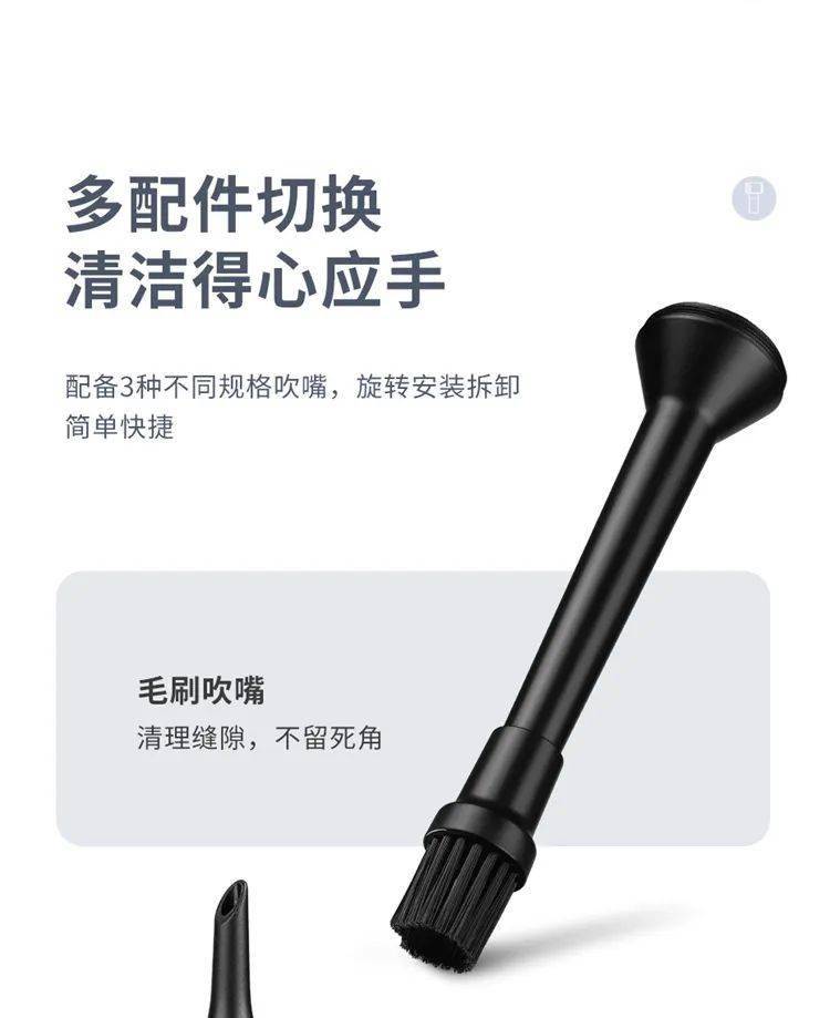 此外,暴力电气吹配有 3 种不同规格的吹嘴,可用于清理相机、键盘、机箱、汽车、家居缝隙等。
