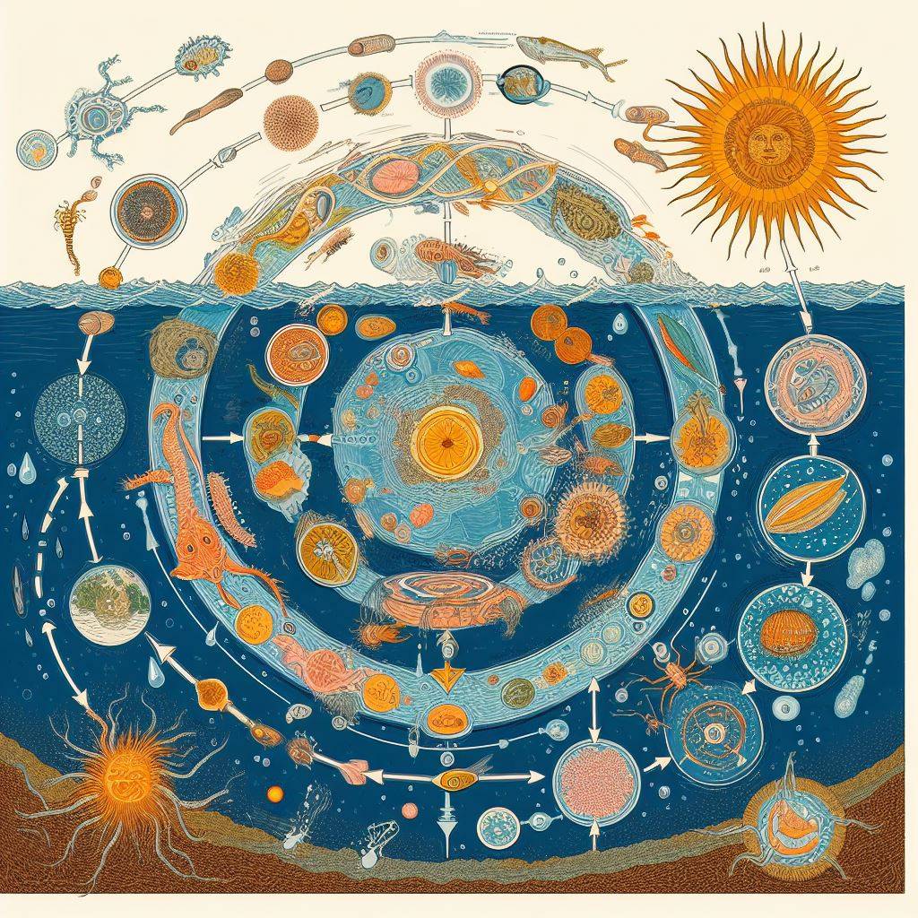 水中的“浓汤”经过了长时间的演化,可能孕育了地球上的生命起源。一种可能的情景是,水中的有机分子,聚集在一些微小的脂质泡中,形成了原始的细胞。这些原始的细胞,逐渐发展出了遗传物质,如RNA和DNA,以及能量物质,如ATP,从而实现了自我复制和代谢的功能。这些原始的细胞,就是生命的最初形式。