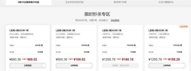 备受关注的华为云轻量应用服务器也是有大促销,特别是新用户有非常好的福利,满足了中小企业的各种需求和应用场景。例如云耀L实例的2核2G的3M带宽配置,带来了高性价比的价格,一年才89块钱左右,适合搭建轻量级应用,用于电商店铺管理、初创企业建站等场景,以及云耀L实例-的2核4G的4M带宽配置,对于云上开发测试、自建博客论坛的开发者,100块钱/年的价格绝对超值。还有云耀L实例-的2核4G的5M带宽配置,一年也才158块钱,非常适合企业级应用场景,更稳定计算能力,程序开发、小游戏部署的最佳之选。