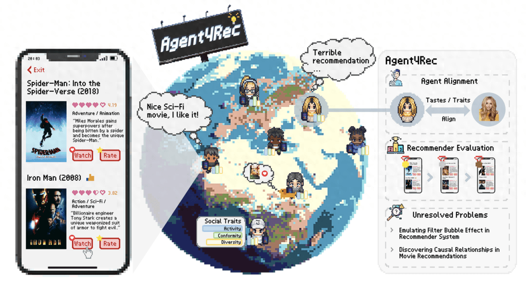 一直以来,推荐系统领域面临模型线上线下效果差距大的痛点问题,昂贵的线上 A/B 测试成本使得广大研究人员望而却步,也造成学术界的推荐系统研究与工业界的实际应用间的巨大割裂。随着大语言模型展现出类人的逻辑推理和理解能力,基于大语言模型的智能体(Agent)能否模拟真实用户的交互行为,从而构建一个可靠的虚拟推荐 A/B 测试场景,以帮助推荐研究的应用落地,是一个急迫、重要且极具经济价值的问题。