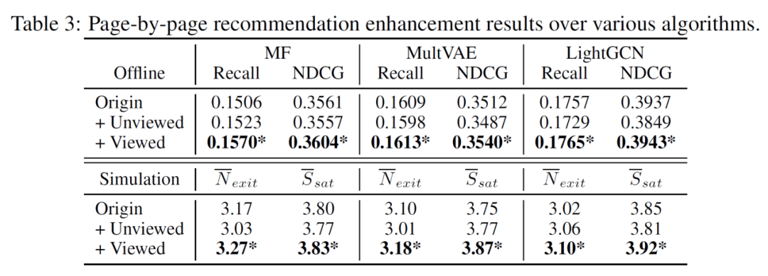 仿照现实生活中推荐系统会根据用户反馈进行更新的场景,作者在完成一轮推荐之后,将 agent 选择的高分电影或未观看的电影以正样本加入训练集,重新训练推荐系统,并将重新训练的推荐算法再次部署到 Agent4Rec 平台。结果表明,将 agent 选择的高分电影对推荐系统进行再训练,在离线指标与模拟的 “在线” 指标上均得到了提升。而将 agent 不喜欢的电影作为数据增强则在大多数情况下起到了负向的效果。这从侧面说明 agent 的行为与真实用户行为对齐。
