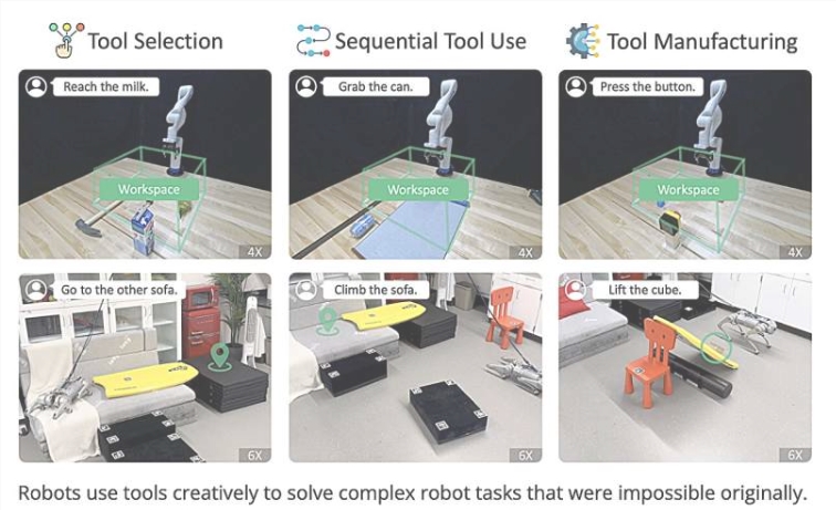 由卡内基梅隆大学和Google DeepMind开发的RoboTool系统利用大型语言模型,使机器人能够更创造性地使用工具,通过自然语言指令生成可执行代码,拓展机器人在家庭和创新领域的应用。