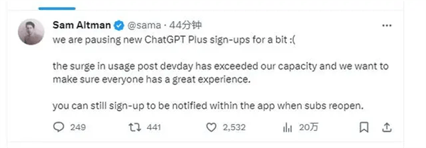 由于ChatGPT的激增使用量导致服务器负担过大,OpenAI决定暂停新用户注册ChatGPT Plus账号,以确保服务稳定。