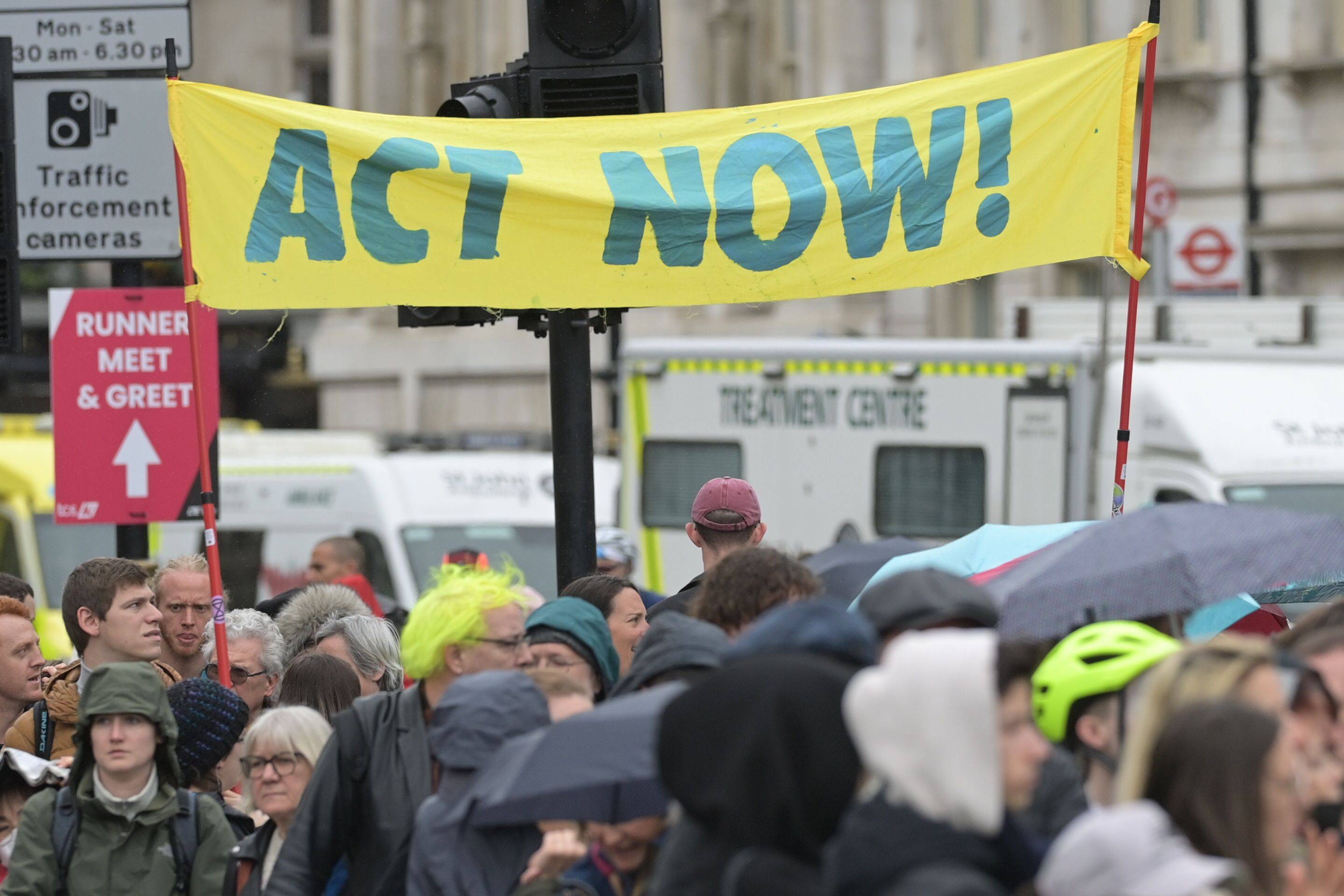 当地时间2023年4月23日,英国伦敦,示威者举行抗议活动,呼吁人们重视气候危机。图/IC photo