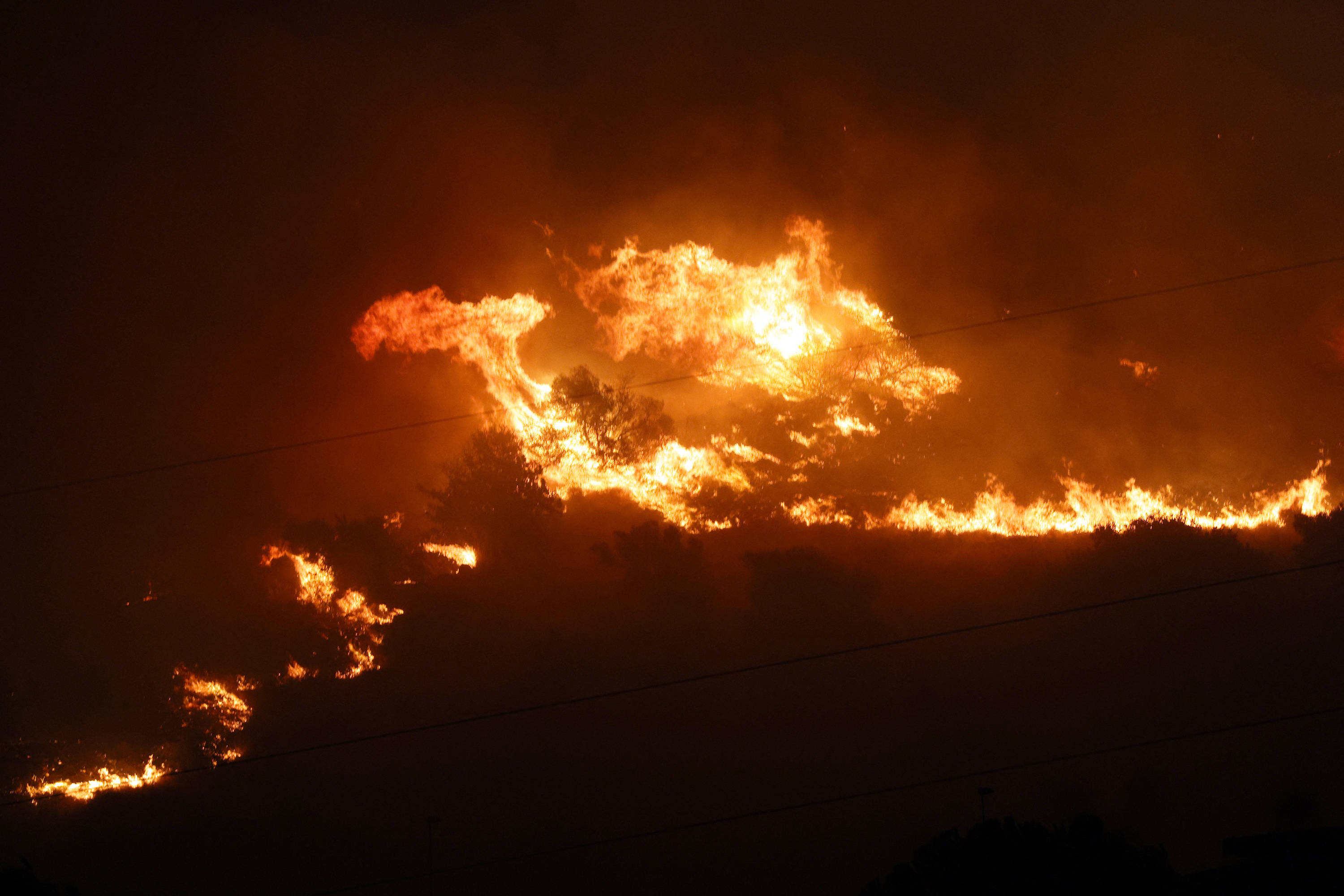 资料图:当地时间2023年9月22日,意大利西西里岛,当地野火肆虐并迅速蔓延,附近居民紧急疏散。图/IC photo