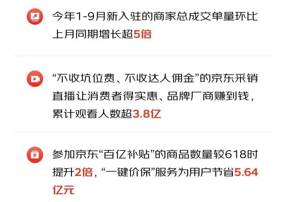 同时,京东为入选商家提供免收坑位费、更低的平台扣点和官方补贴等优惠,通过降低商家经营成本,为价格下探创造更大空间。