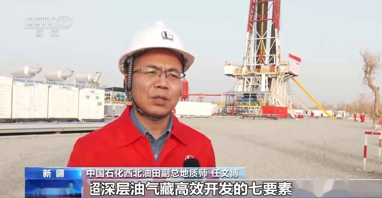 中国石化西北油田副总地质师 任文博:我们创新形成了超深层油气藏高效开发七要素关键技术,8000米以深规模的储层预测吻合率达到90%以上,单井产能由三年前的2.5万吨提高到目前的8.2万吨。通过“少井高产”策略的实施,实现了超深层油气藏的高效益开发。