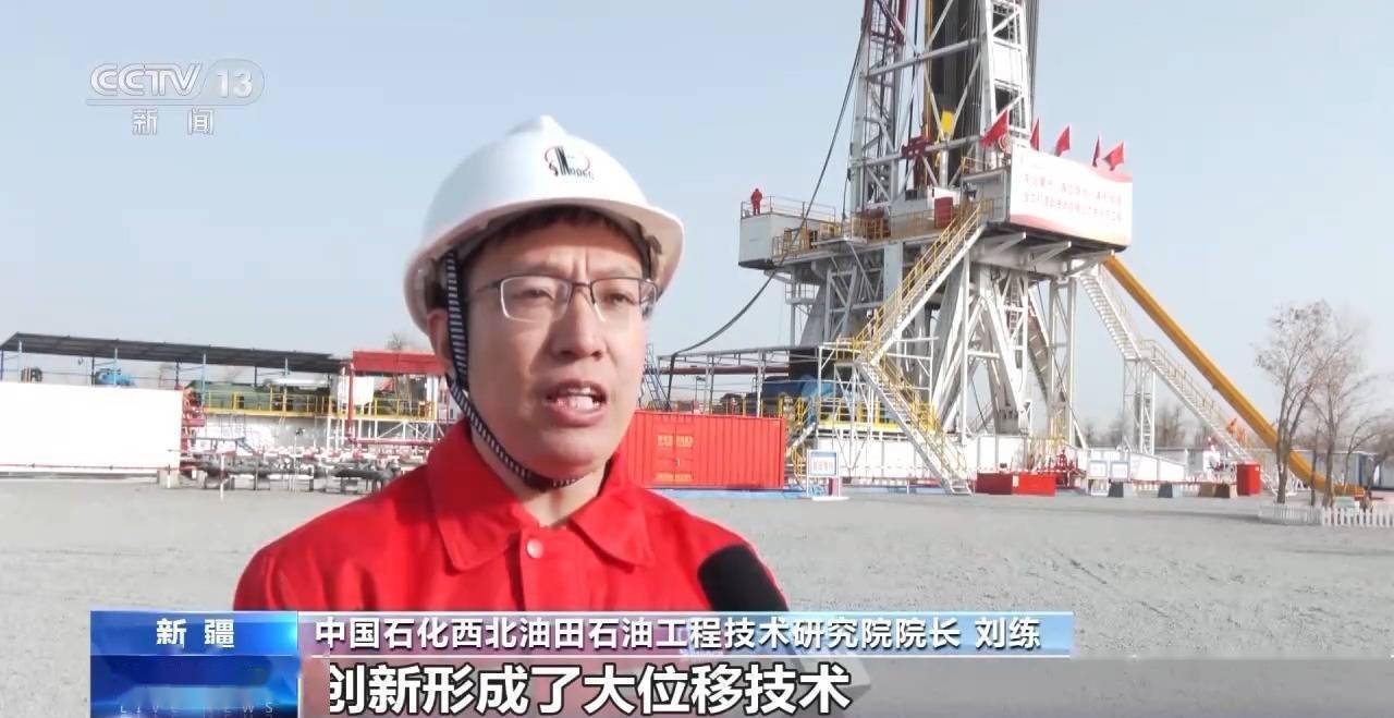 中国石化西北油田石油工程技术研究院院长 刘练:我们在钻探过程中创新形成了大位移技术,钻头从5300米斜向钻进,成功钻取到距离井口3.4公里以外的油气资源。