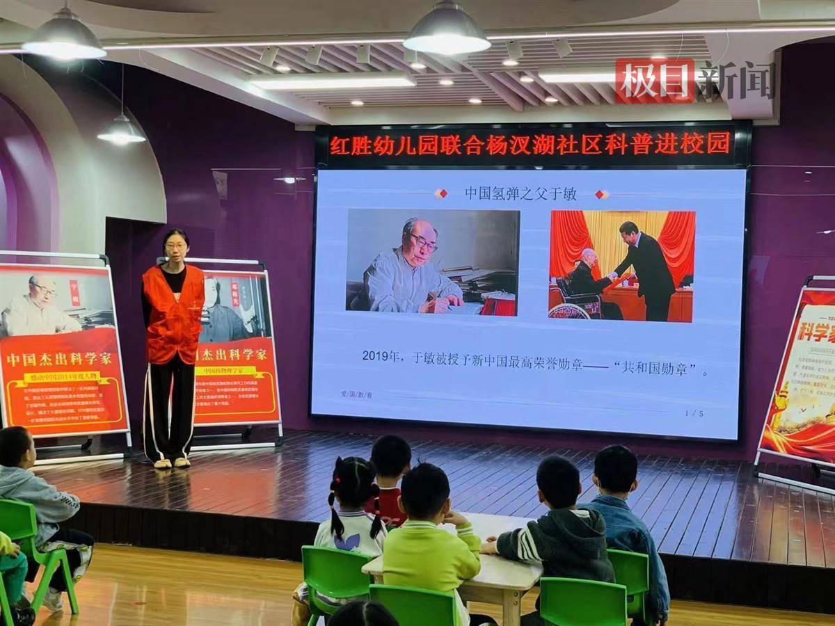 近日,由武汉市江汉区红胜幼儿园联合汉兴街道杨汊湖社区举办了“科普进校园 共筑中华科技梦”为主题的科普进校园活动,近200余名师生参加。