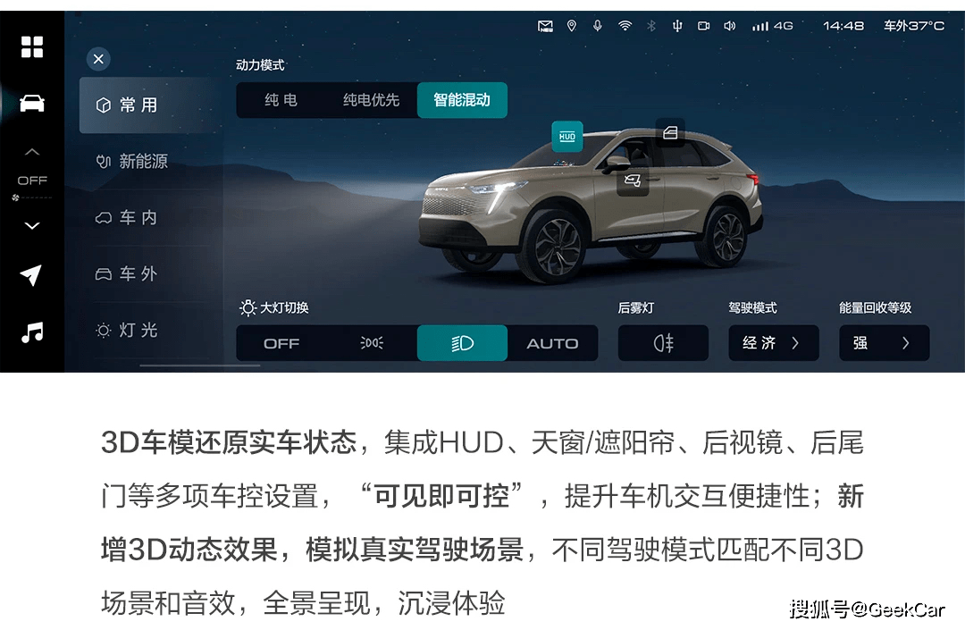 这些功能里,有一部分是全新的功能,也有一些是功能体验的优化。比如「超影像 3D 车控」这个功能就非常实用,它可以在车机页面上全面展示车辆的真实状态,而且还实现了可见即可控,包括 HUD、天窗/遮阳帘、后视镜、后尾门、车窗、后视镜打开/折叠等,让便捷的操作一步到位。