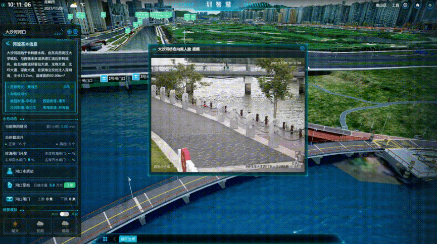 该项目是在区政数局指导下,依托南山区“圳智慧”一网统管平台及智慧水务平台,以大沙河流域为试点,通过运用物联感知设备、物联感知数据空间化等手段,采用“CIM+BIM+IoT”技术,监测水务水利、生态环境、城市管理等领域的运行状况,以全要素可视、全流程可控、全闭环处置的创新思路,实现水务监管从原有的“被动式、应急式”管理模式向“主动式、预警式”的转变,通过人防+技防的方式,为大沙河长治久清提供科技助力,为“绿美南山”生态建设注入数字科技源动力。