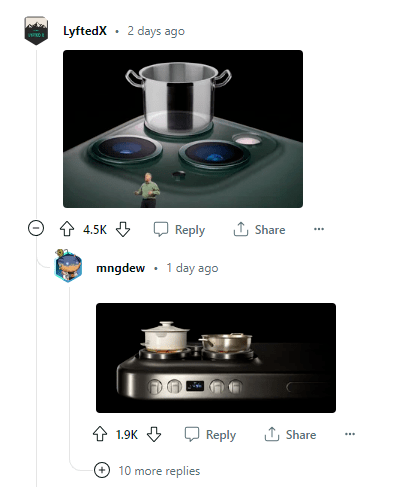 还有用户反馈,自己的 iPhone 15 Pro 机型手机放在口袋中也会发热,温度高到都快烫伤人了,以至于他无奈将其取出。网友还做了表情包,调侃 iPhone 15 系列都可以煮东西了。