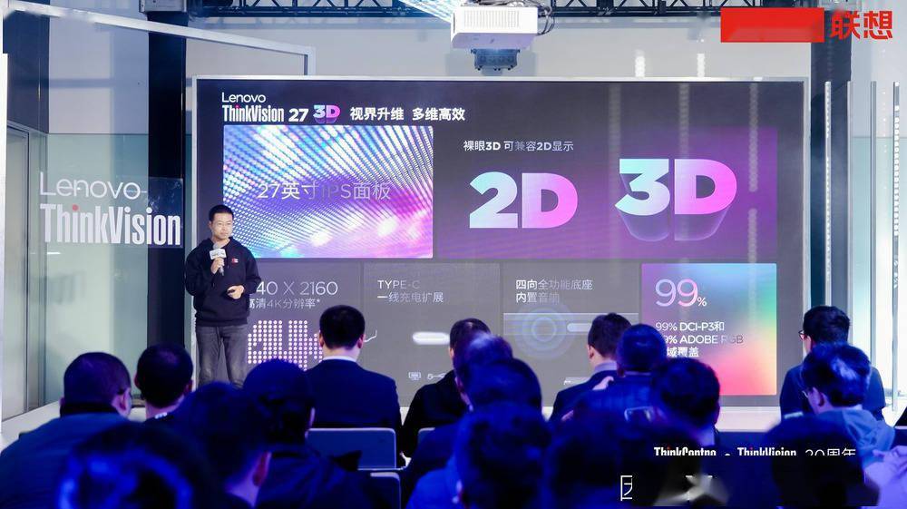 DoNews11月17日消息 日前,在以“因思而变 智领未来”为主题的ThinkCentre和ThinkVision 20周年纪念活动上,联想正式发布了业内首款2D/3D 可切换裸眼3D显示器——联想ThinkVision 27 3D。该产品首次将裸眼2D、3D可切换技术应用在显示器领域,并拓展了3D技术多元化应用场景,展现了联想ThinkVision深厚的产品创新能力,彰显了联想AI内嵌的智能终端引领用户体验升级的强大实力。
