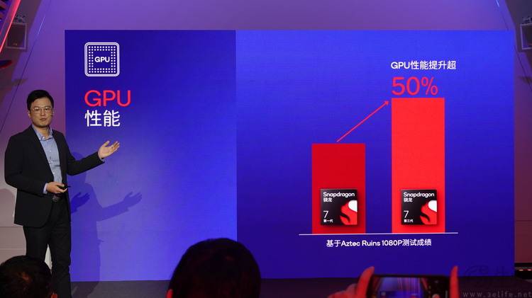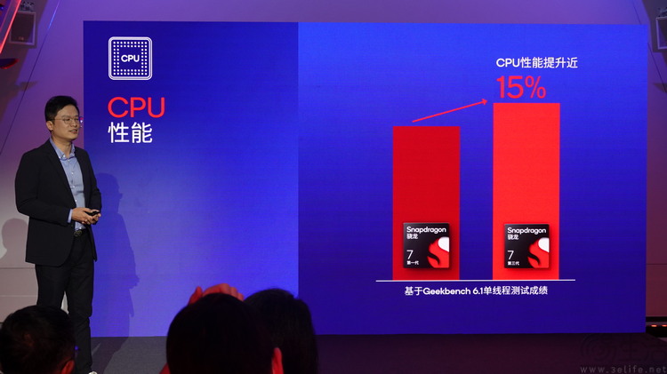 虽然高通方面今天并没有公布第三代骁龙7的制程、架构细节,但是他们也公布了一些值得参考的数据。
