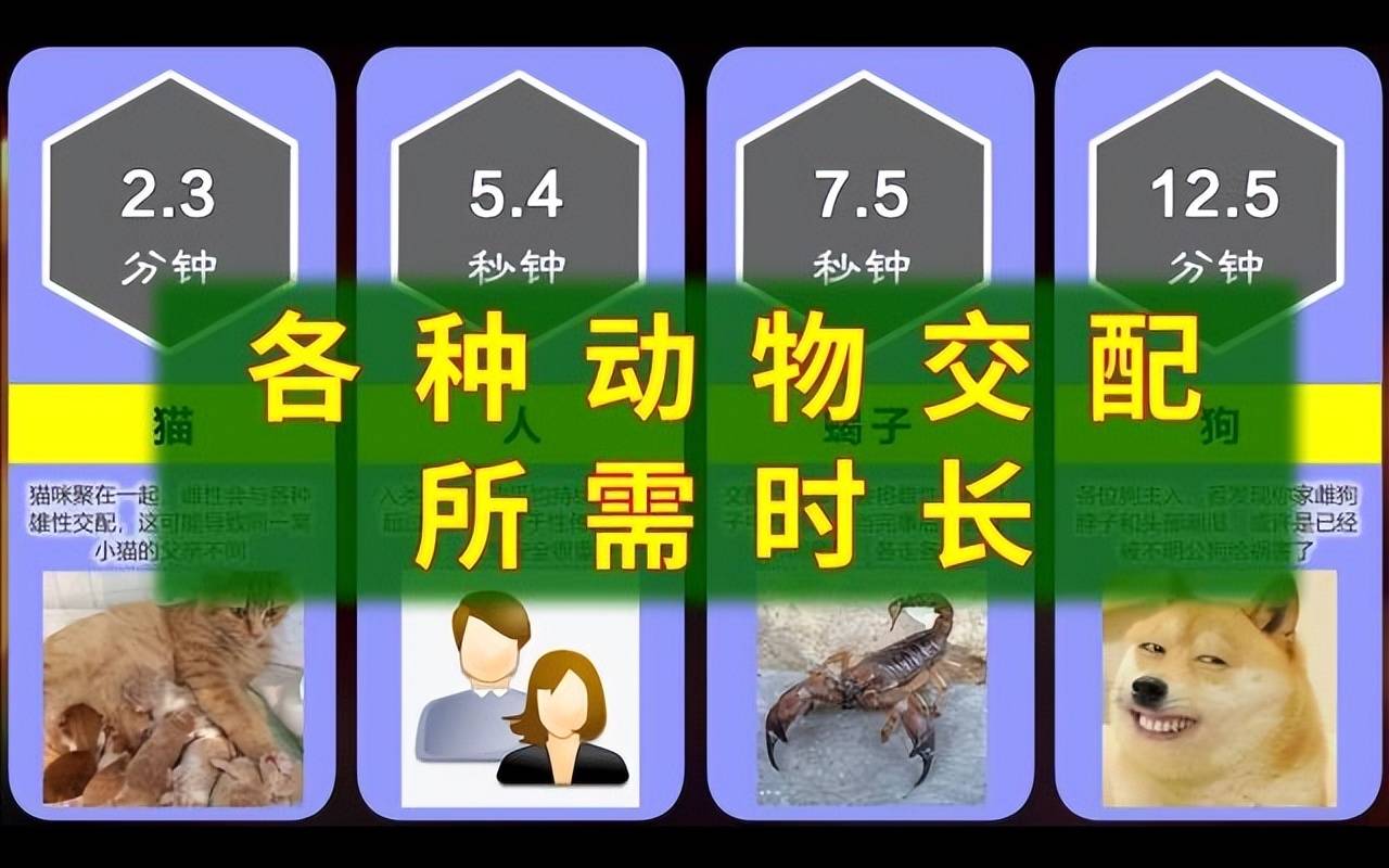 动物交配是动物繁殖的重要过程,对于生物的进化和种群的延续具有重要意义。在动物界中,交配时间的长短因物种的不同而异。