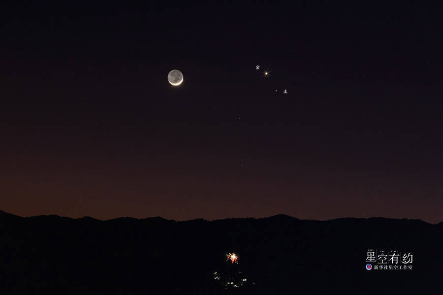 云南星空摄影爱好者胡凯华2023年1月23日在云南临沧拍摄的金星土星伴月。(本人供图)