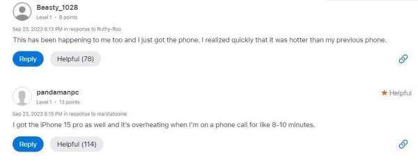 另外,根据苹果社区上部分国外网友的反映,在进行打电话、拍照、充电等操作时出现了机身温度过高的情形,甚至有多个网友称,在剩余内存空间足够大的情况下,即使不用手机也会发热。