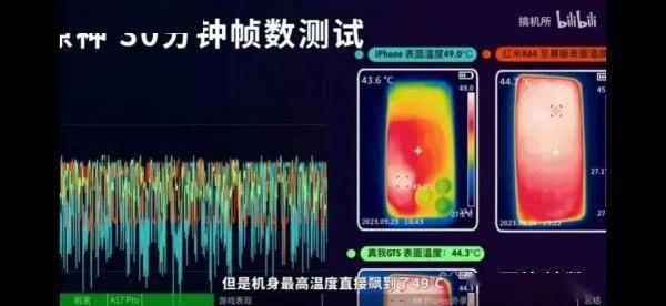B站的一位up主以iPhone 15 Pro试玩了游戏《原神》,在26.5°C的室温环境下,30分钟的游戏时间结束后,机身温度已经飙升到49°C,还出现了肉眼可见的掉帧。