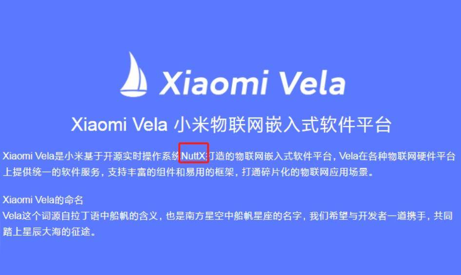 而NuttX是啥?它是一个开源的实时操作系统,完全实时,并完全开放,谁都可以使用,而小米就是基于NuttX,开发出了自己的物联网系统Vela,vela在2020年的时候就发布了。