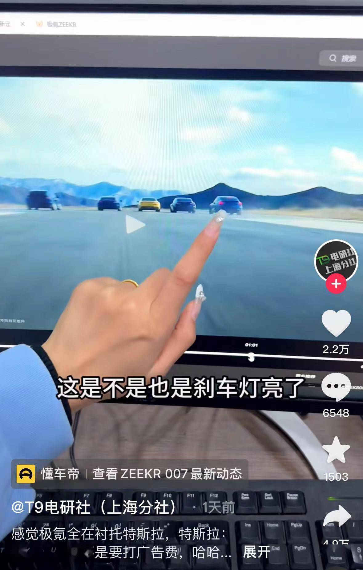 「比速度为什么要踩刹车灯?」网友调侃极氪007的宣传片反向宣传了特斯拉,还有部分极氪车主表示「看完挺尴尬的」,不知道这个宣传片是如何过审的。
