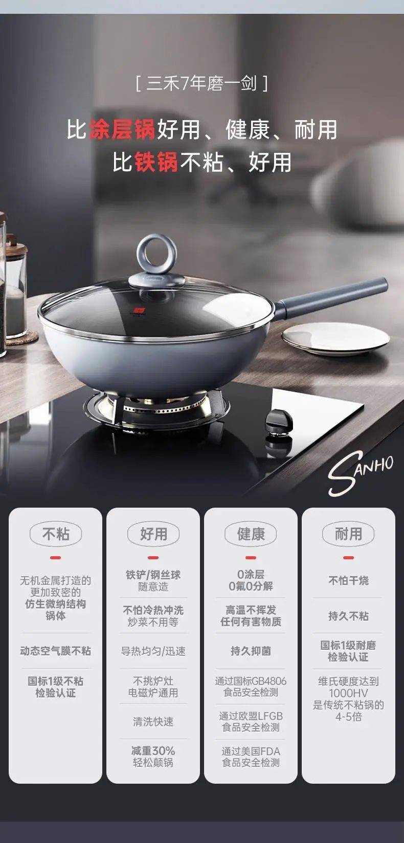 今天要推荐的这款三禾0涂层微纳不粘炒锅,能够完美解决上述问题。质量轻、不生锈、易清洗、无隐患!
